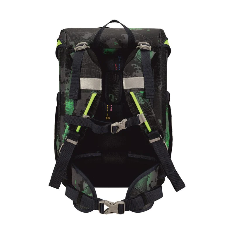 So komfortabel wie nie der neue »ErgoFlex Easy« mit schlanker, aber fester Silhouette hat viel Platz für Bücher, Hefte & vieles mehr. Dank seines cleveren Tragegurtsystems wächst der Ranzen mit und entlastet den Kinderrücken. Durch ihr mehrfach höhenverstellbares Rückengurtsystem passen sich der Schulrucksack dem Kinderrücken optimal an. Die leicht handhabbare Rückenlängenanpassung sorgt dafür, dass die Höhe des Ranzens in fünf Stufen ideal auf die Größe des Kindes abgestimmt werden kann. Der »ErgoFlex Easy« verfügt über eine atmungsaktive, ergonomische Rückenpolsterung aus stabilem Material, welches sich dem Kinderrücken optimal anpasst, damit der Ranzen-Inhalt nicht durchdrücken kann. Die stabile Konturierung sorgt dafür, dass die Wirbelsäule gleichmäßig entlastet wird und der Schulranzen auch in Bewegung immer mittig auf dem Rücken sitzt. Gepolsterte Schultergurte aus Mesh in ergonomischer S-Form sind bequem zu tragen und rutschen dank längen- und höhenverstellbarem Brustgurt auch nicht. Durch die verstellbaren Lagekontrollriemen sitzt der Schulranzen außerdem besonders körpernah und rückenschonend. Der Beckengurt mit gepolsterten Seitenflügeln verlagert den Schwerpunkt des Ranzens ergonomisch auf die Hüfte. Schultern und Rücken werden so entlastet. Bei Bedarf, oder wenn das Kind größer wird, kann der Beckengurt einfach abgenommen werden. Sowohl das Außengewebe als auch das Futter eines jeden DerDieDas Schulranzens aus recycelten PET-Flaschen. Das Außengewebe ist gegen Schmutz und Wasser imprägniert. Die großen reflektierenden Flächen sorgen für einen sicheren Schulweg. Das Beste aber ist: Der »ErgoFlex Easy« kommt im praktischen Komplett-Set mit Heftebox, Sporttasche, Faulenzermäppchen, einem befüllten Schüleretui (Staedtler Qualitätsstifte) und 3 Wechselbuttons.