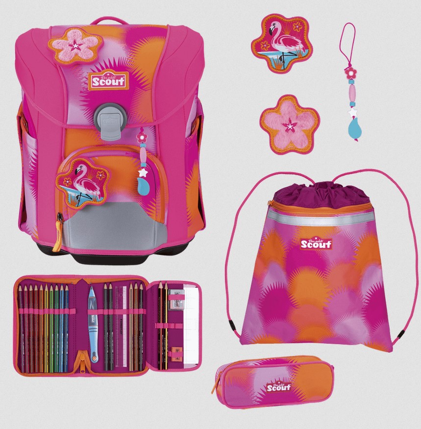 Bunt wie Konfetti: Mit unserem leichten Schulranzen Scout Micro kommt Farbe in den Schultag. Er ist ergonomisch, hat einen festen Korpus und ist mit seiner abgerundeten Form und abgeschrägtem Deckel ideal für kleine, zierliche Kinder. Zudem sorgt er mit retroreflektierenden und fluoreszierenden Flächen nach DIN 58124 für besonders gute Sichtbarkeit. Das Beste aber: Sportbeutel, Federmäppchen mit Staedtler Qualitätsbuntstiften, Schlamperetui, 2 Funny Snaps Move sowie 1 Blümchen-Anhänger sind inklusive.