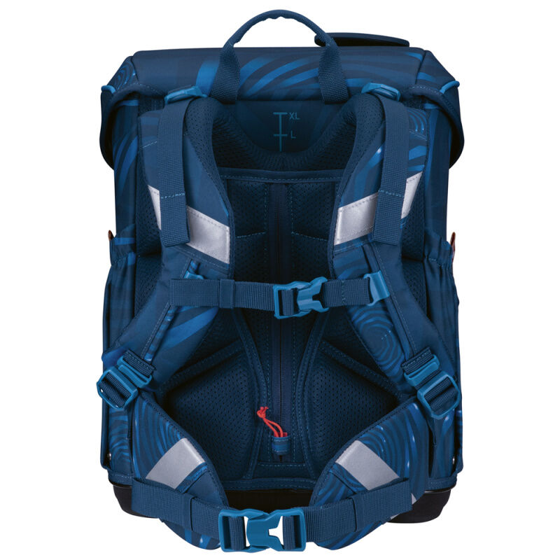 Scout Schulranzen - Die Exklusiv-Kollektion Scout Neo LED bietet mehr Strahlkraft. Die batteriebetriebenen LED-Lichter leuchten bei Bewegung des Ranzens, können aus- und angeschaltet werden. Der Neo Schulranzen ist aufgrund seines ergonomischen Aufbaus mit einem gepolsterten Soft-Mesh Rückenteil, ergonomischen Schulterträgern mit bequemer Polsterung mit atmungsaktivem Mesh, einem verstellbaren Brustgurt und einem verstellbaren Hüftgurt, optimal auf die Anatomie Ihres Schulkindes angepasst. Durch das innovative, höhenverstellbare Tragegurtsystem wird das Gewicht auf die Hüften verlagert und der Rücken Ihres Schulkindes in der Wachstumsphase entlastet. Für mehr Tragekomfort besitzen die Schulterträger eine breite Auflagefläche am Nackenpolster. Das Magnetschloss lässt sich kinderleicht öffnen und ist selbstschließend beim Zuklappen des Deckels. Eine Fronttasche bietet Platz für die Brotdose. Zwei dehnbare Seitensteckfächer bieten zusätzlichen Stauraum für die Trinkflasche oder einen Regenschirm. Das Hauptfach ist übersichtlich unterteilt und unter dem Deckel befinden sich Elastikbänder zur platzsparenden Aufbewahrung des Schüleretuis. Ein Namensschild ist ebenfalls im Hauptfach vorhanden. Mit seinem flachen Deckel sorgt der Neo für eine bessere Bewegungsfreiheit und eine bessere Rundumsicht im Straßenverkehr. Der standfeste Boden mit seiner stabilen Bodenwanne bietet Schutz vor Nässe. Eine Vielzahl reflektierender Elemente bietet Ihrem Schulkind zusätzliche Sicherheit im Straßenverkehr. Der Neo besitzt mit den Maßen 38 x 30 x 27 cm, einen schlanken Korpus und ist dennoch mit einem Volumen von 21.5 Litern besonders geräumig (inkl. Seitentaschen und Vordertasche). Der Schulranzen hat ein Leergewicht von ca. 1.250 Gramm (ohne abnehmbare Elemente und Zubehör).