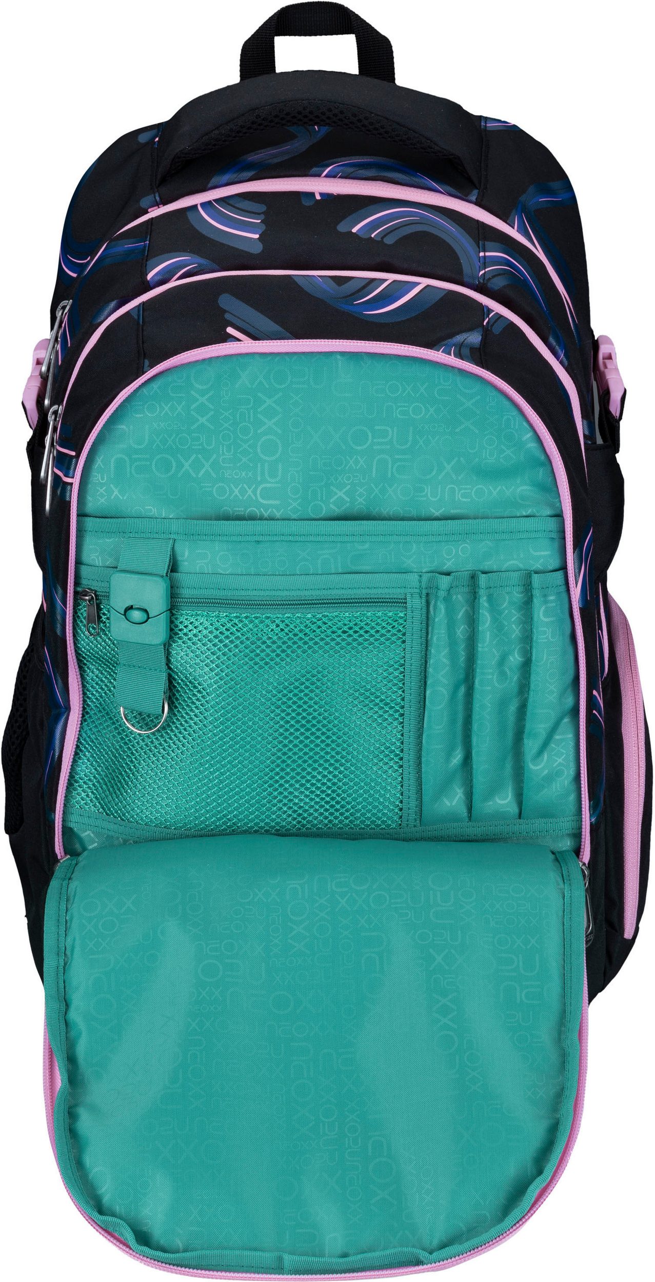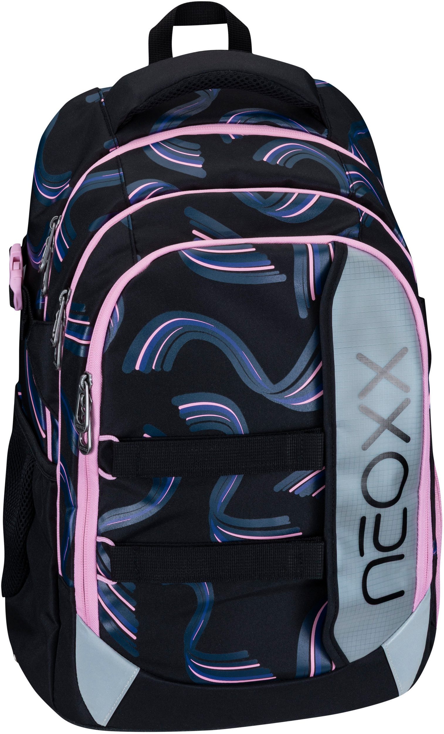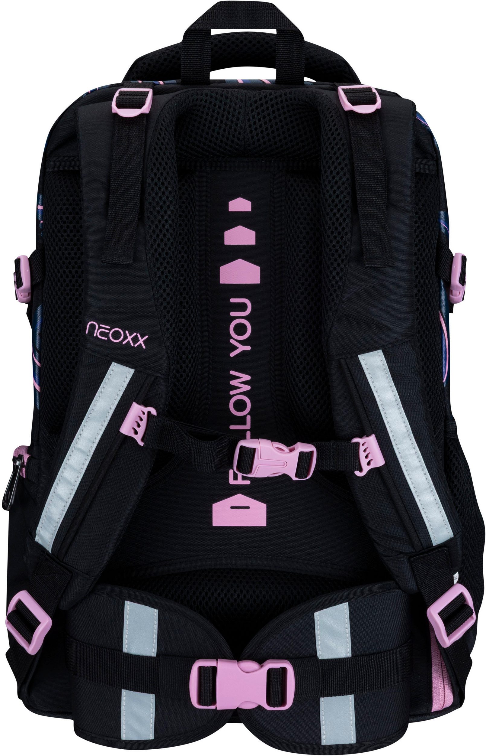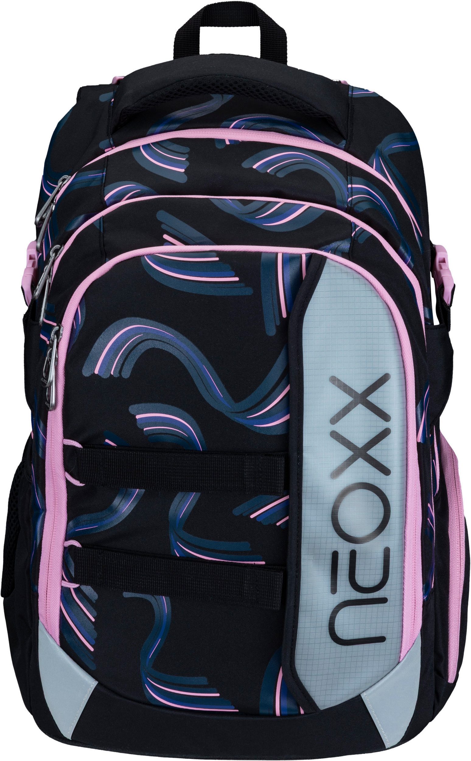 Der Schulrucksack neoxx "Active Pro" eignet sich hervorragend für die 5.Klasse. Der Schulrucksack "Active Pro" verfügt über viel Platz für all deine Sachen: Mit einem Volumen von etwa 26 Litern passt wirklich viel hinein. Ein großes Fach mit Laptop-Organizer, ein seperates Fach für Hefte und ein sperriges Ordnerfach sind ebenfalls vorhanden. Ein Schlüsselband, Stifteschlaufen und ein praktischer Netzorganisator stehen im Vorderfach zur Verfügung. Ein Gummizugband und seitliche Fächer mit Reißverschluss sorgen dafür, dass Sie Flaschen oder andere Dinge schnell zur Hand haben können. Der Schulrucksack "Active Pro" bietet außerdem den größten Tragekomfort. Das gepolsterte Rückenbett und die höhenverstellbaren, gepolsterten Träger ermöglichen es dir, es komfortabel zu tragen. Der abnehmbare Hüftgurt sorgt für zusätzliche Entlastung des Rückens, während der Brustgurt eine gleichmäßige Verteilung des Gewichts gewährleistet. Du hast die Möglichkeit, das Gewicht mithilfe der Lageverstellriemen und seitlichen Kompressionsriemen in unmittelbarer Nähe zu deinem Rücken zu legen. Um sicherzustellen, dass du auch im Straßenverkehr gut erkennbar bist, hat der Schulrucksack "Active Pro" an der Vorderseite und den Trägern subtile Reflektorflächen. Der Rucksack ist aus widerstandsfähigen und wasserabweisenden Materialien gefertigt, um dich in allen Situationen zu begleiten. Der neoxx Active Schulrucksack trägt auch zum Schutz der Umwelt bei. Das Innenfutter des Active Pro" Schulrucksacks besteht zu 100 % aus recycelten PET-Flaschen. Für jeden Rucksack werden ca. 13 Flaschen recycelt. neoxx arbeitet auch mit der Turtle Foundation zusammen, um Meeresschildkröten dabei zu helfen, in einem sicheren Umfeld zu brüten.