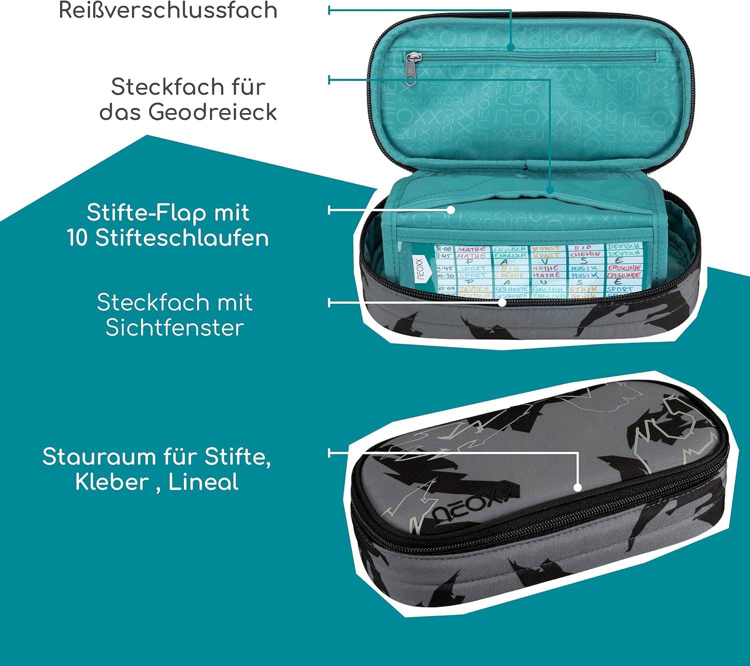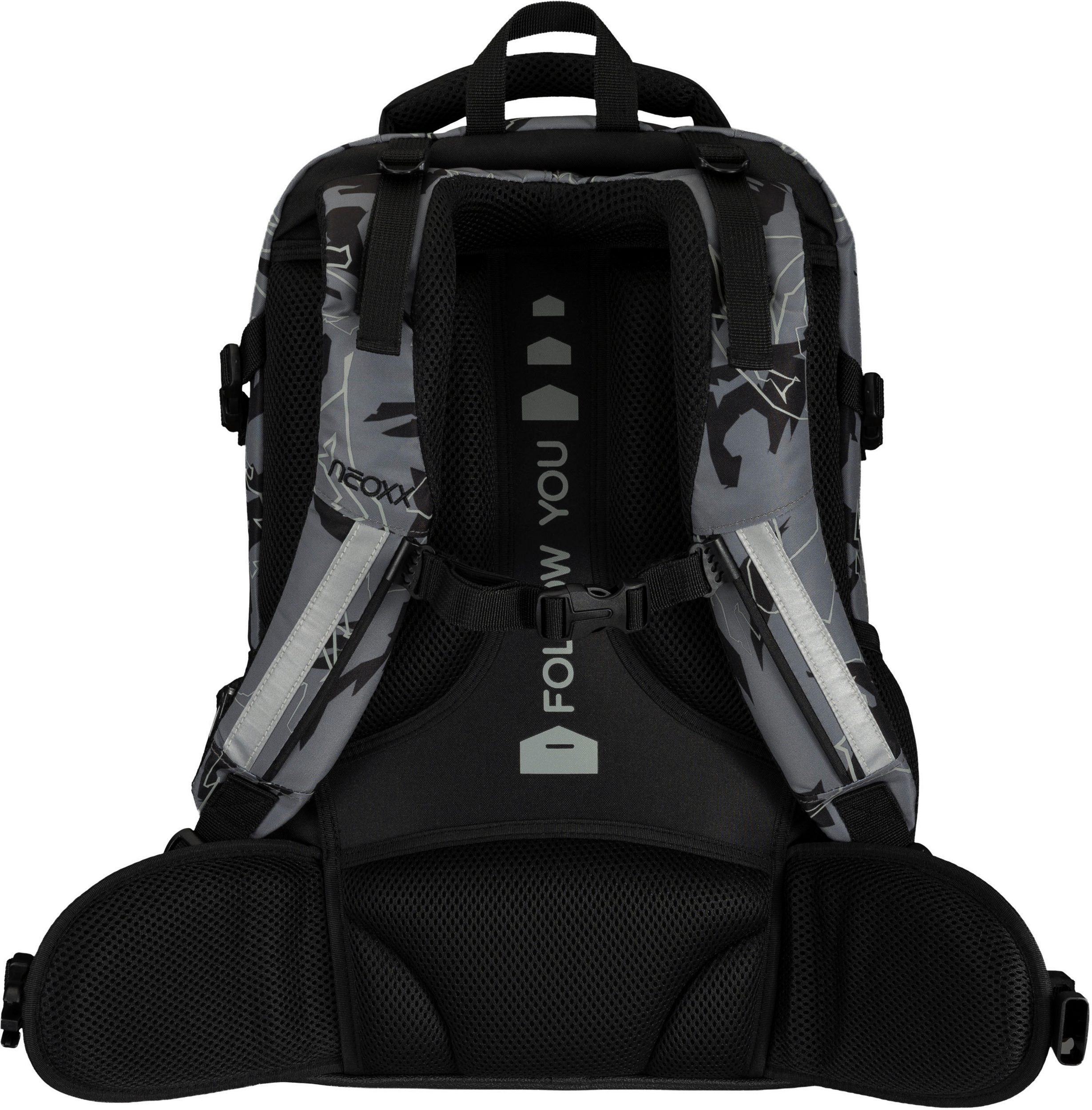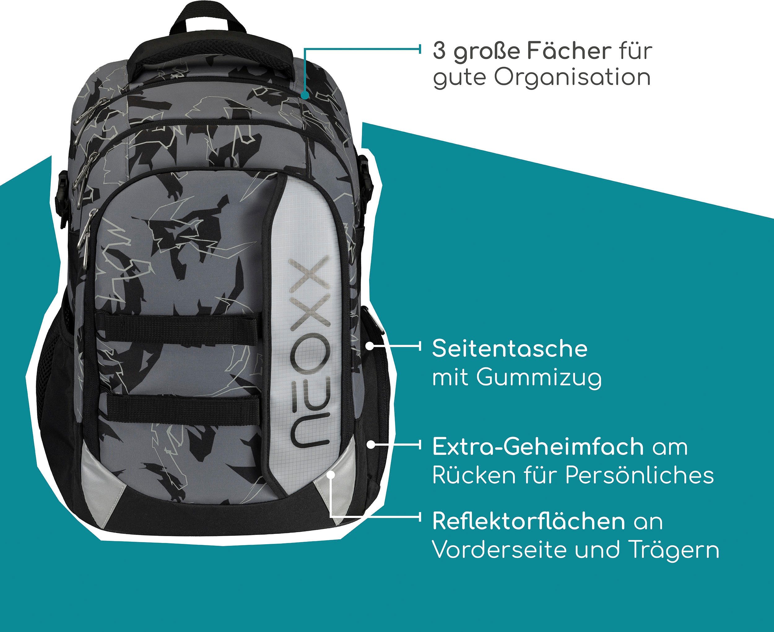 Der Schulrucksack neoxx "Active Pro" eignet sich hervorragend für die 5.Klasse. Der Schulrucksack "Active Pro" verfügt über viel Platz für all deine Sachen: Mit einem Volumen von etwa 26 Litern passt wirklich viel hinein. Ein großes Fach mit Laptop-Organizer, ein seperates Fach für Hefte und ein sperriges Ordnerfach sind ebenfalls vorhanden. Ein Schlüsselband, Stifteschlaufen und ein praktischer Netzorganisator stehen im Vorderfach zur Verfügung. Ein Gummizugband und seitliche Fächer mit Reißverschluss sorgen dafür, dass Sie Flaschen oder andere Dinge schnell zur Hand haben können. Der Schulrucksack "Active Pro" bietet außerdem den größten Tragekomfort. Das gepolsterte Rückenbett und die höhenverstellbaren, gepolsterten Träger ermöglichen es dir, es komfortabel zu tragen. Der abnehmbare Hüftgurt sorgt für zusätzliche Entlastung des Rückens, während der Brustgurt eine gleichmäßige Verteilung des Gewichts gewährleistet. Du hast die Möglichkeit, das Gewicht mithilfe der Lageverstellriemen und seitlichen Kompressionsriemen in unmittelbarer Nähe zu deinem Rücken zu legen. Um sicherzustellen, dass du auch im Straßenverkehr gut erkennbar bist, hat der Schulrucksack "Active Pro" an der Vorderseite und den Trägern subtile Reflektorflächen. Der Rucksack ist aus widerstandsfähigen und wasserabweisenden Materialien gefertigt, um dich in allen Situationen zu begleiten. Der neoxx Active Schulrucksack trägt auch zum Schutz der Umwelt bei. Das Innenfutter des Active Pro" Schulrucksacks besteht zu 100 % aus recycelten PET-Flaschen. Für jeden Rucksack werden ca. 13 Flaschen recycelt. neoxx arbeitet auch mit der Turtle Foundation zusammen, um Meeresschildkröten dabei zu helfen, in einem sicheren Umfeld zu brüten.