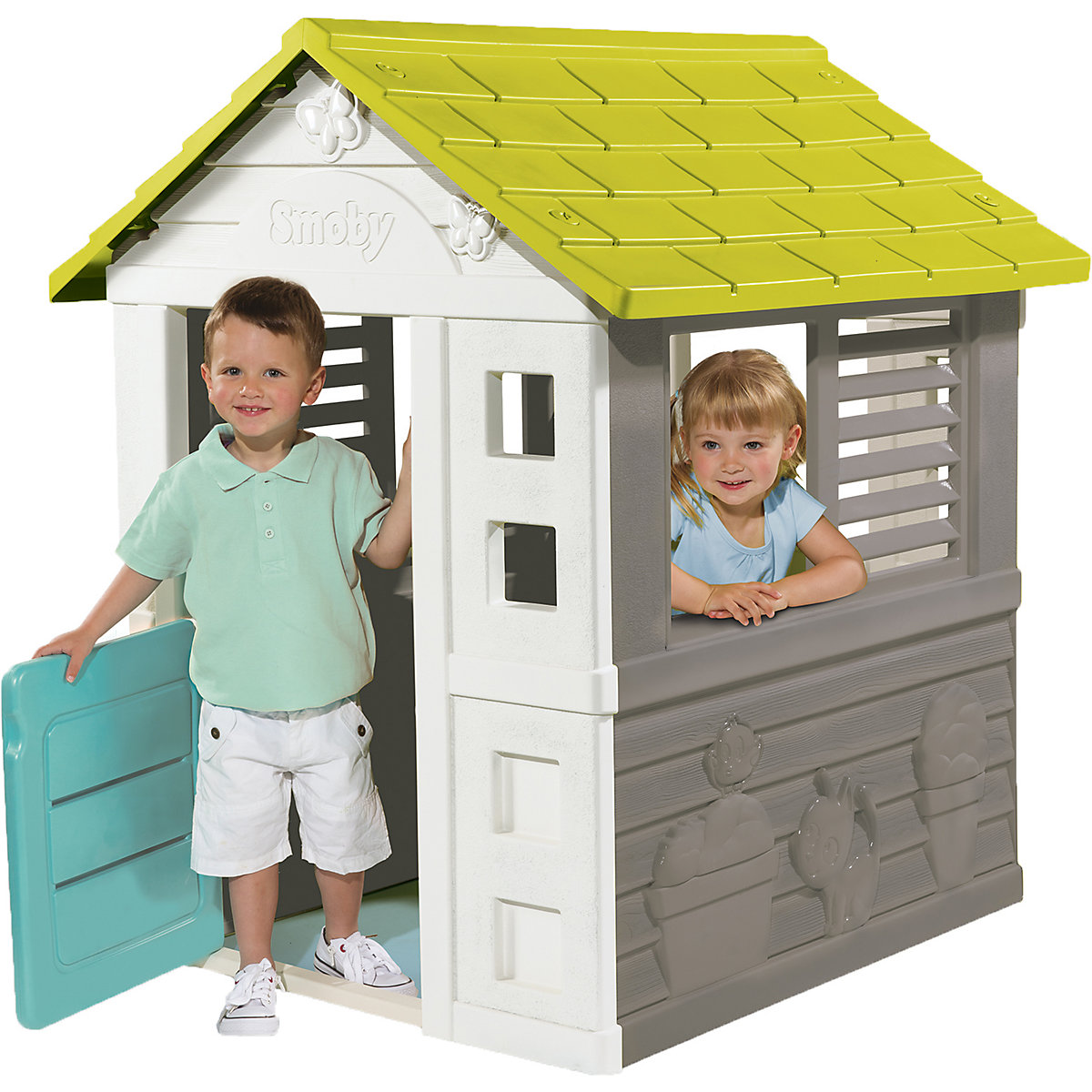 Das bezaubernde Spielhäuschen "Jolie" von Smoby bietet Kindern eine tolle Spielwelt im eigenen Garten! Das geräumige Häuschen bietet jede Menge Platz. Hier kann man sich klasse verstecken, mit Freund*innen spielen und vieles mehr. Das Häuschen ist detailreich mit süßen Tieren verziert und mit zwei Fenstern und einer kleinen Türe ausgestattet. Dank der Anfertigung aus stabilem Kunststoff hält das Spielhäuschen auch schlechtem Wetter stand und kann besonders lange genutzt werden. Die perfekte Ausstattung für jeden Garten!