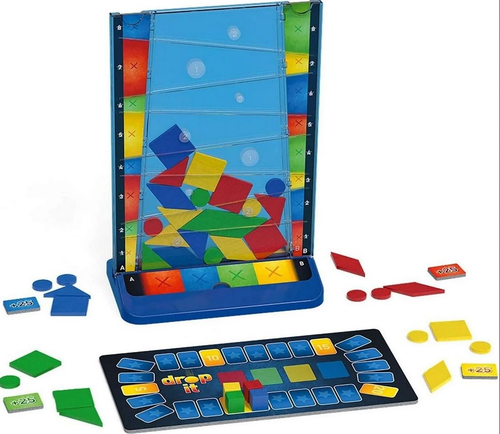 Geschicklichkeit und Taktik sind bei diesem Familienspiel gefragt. Reihum werfen die Spieler jeweils einen Spielstein in das Spielbrett. Punkte gibt es für die höchste Ebene, in die der Spielstein ragt sowie wenn Sonderpunkte berührt werden. Doch Vorsicht: Gleiche Formen oder Farben mit dem eingeworfenen Spielstein zu berühren, ist verboten. Passiert es dennoch, geht der Spieler leer aus. Wer am Ende die meisten Punkte hat, gewinnt. Auch in Teams spielbar!