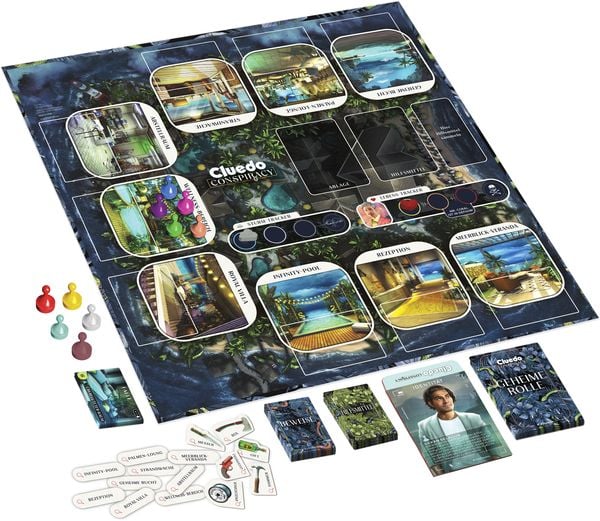 Bei Cluedo Conspiracy geht es um geheime Identitäten und Verschwörungen! Als Gäste des Viper Resorts entdeckt ihr, dass jemand versucht, den Manager Mr. Coral umzubringen. Eine Serie tödlicher Fallen wurde auf dem Resort verteilt und jemand ist bewaffnet! Jetzt ist es an euch, das ultimative Geheimnis zu entschlüsseln: Wem ist zu trauen? Ihr schlüpft in die Rolle von Cluedo Charakteren und nehmt in Teams geheime Identitäten an: Freunde gegen Verschwörer. Die Freunde versuchen, für Corals Sicherheit zu sorgen und herauszufinden, WER die Verschwörer sind und WO und WOMIT das Komplott geplant war. Die Verschwörer versuchen heimlich, die Freunde zu hintergehen und den Mord an einem bestimmten Ort mit einer bestimmten Waffe durchzuführen. Beide Teams finden dabei Beweise und sprechen darüber – oder auch nicht! Welche Seite wird Erfolg haben? Dieses spannende Spiel für 4–10 Spieler ist ein tolles Gruppenspiel ab 14 Jahren. Als Geschenk für Fans von Krimis, Geheimrollen und dem klassischen Cluedo.