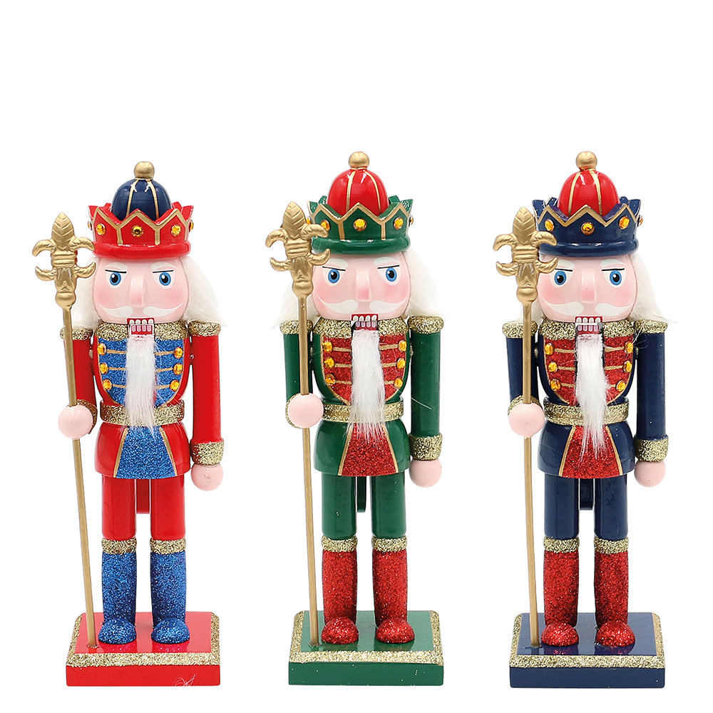 Holz Nussknacker "König" mit Glitter 3-fach sort. 6,5 x 6 x 20 cm