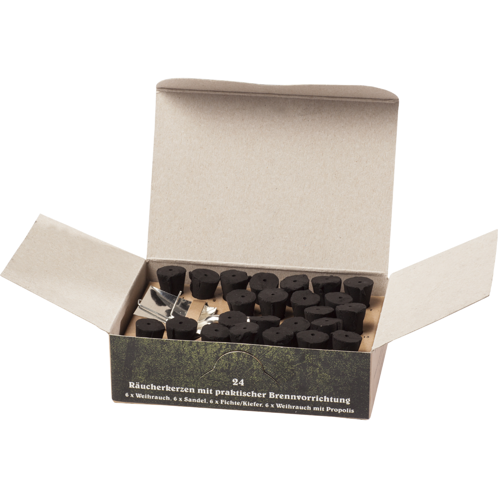 Ein Sammelsurium der besten HUSS-Räucherkerzensorten mit praktischer Brennvorrichtung.