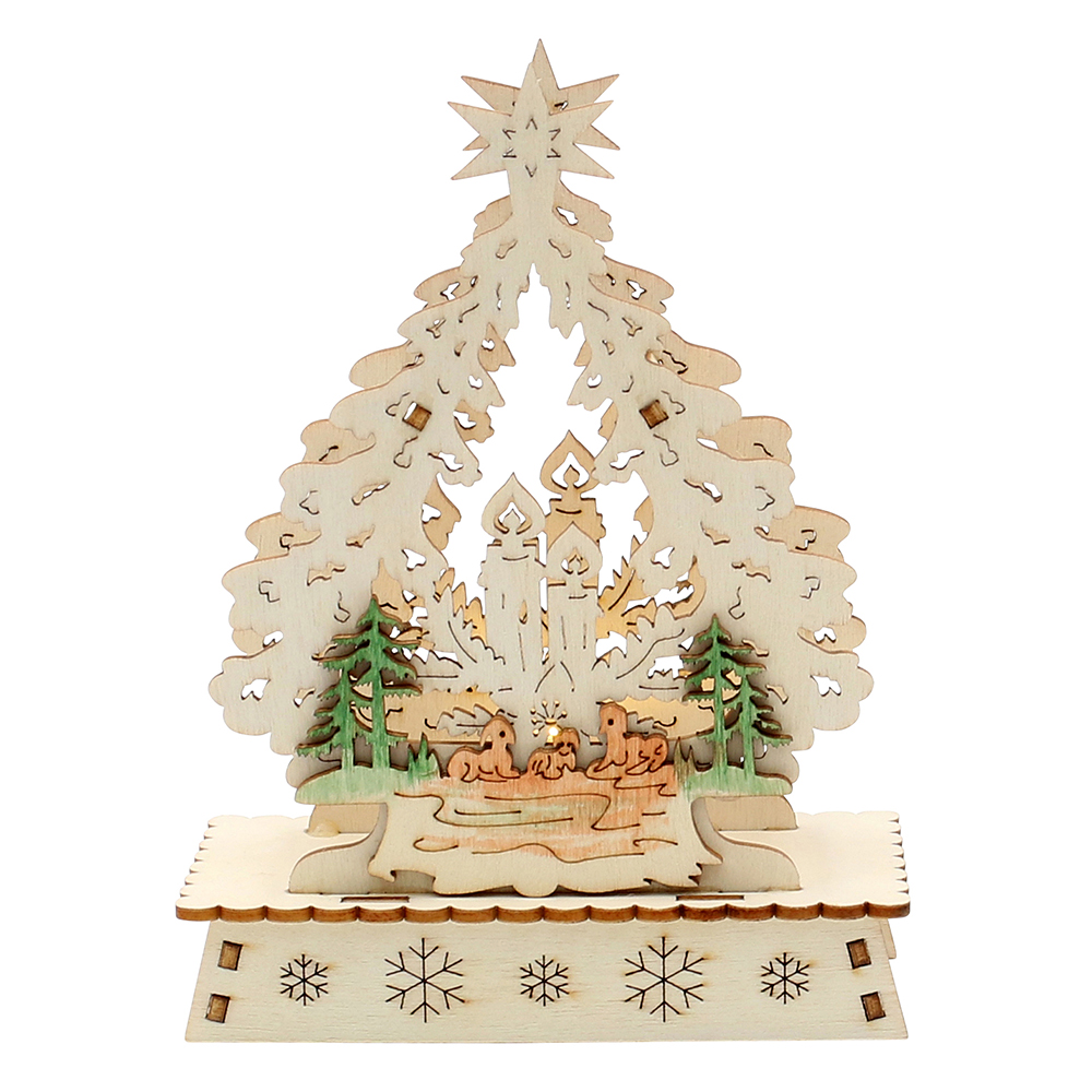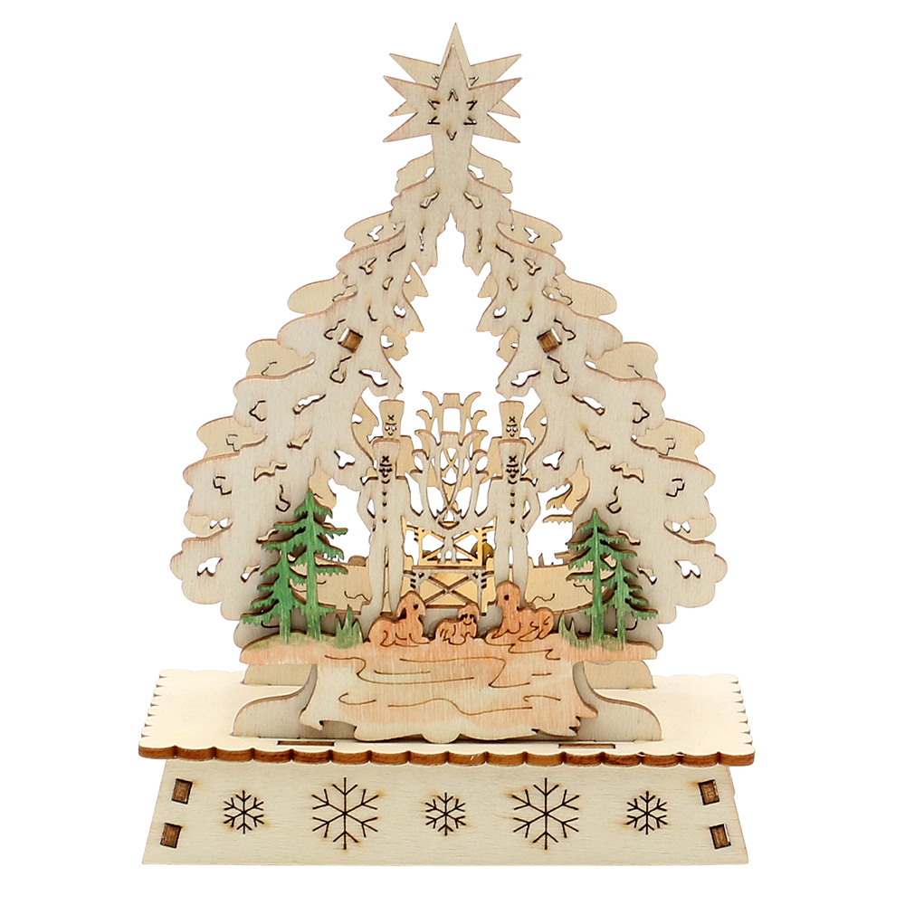 Weiterführende Links zu "SIGRO Holz Mini-Schwibbogen "Weihnachtsbaum" (Laserholz), 6-fach sortiert, Batteriebetrieb"