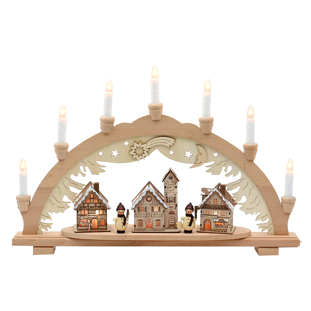 - Schwibbogen "Stadt verschneit mit Schneemannfiguren"